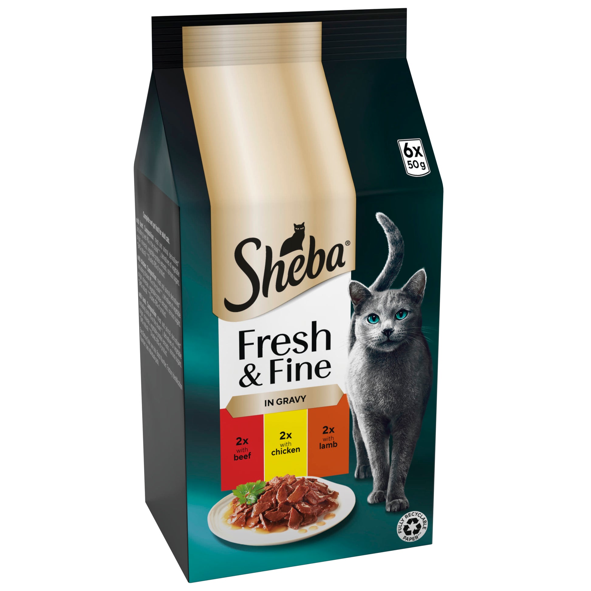 Sheba Fresh & Fine Wet Cat Food Pouches with Beef & Chicken & Lamb in Gravy - 6 x 50g