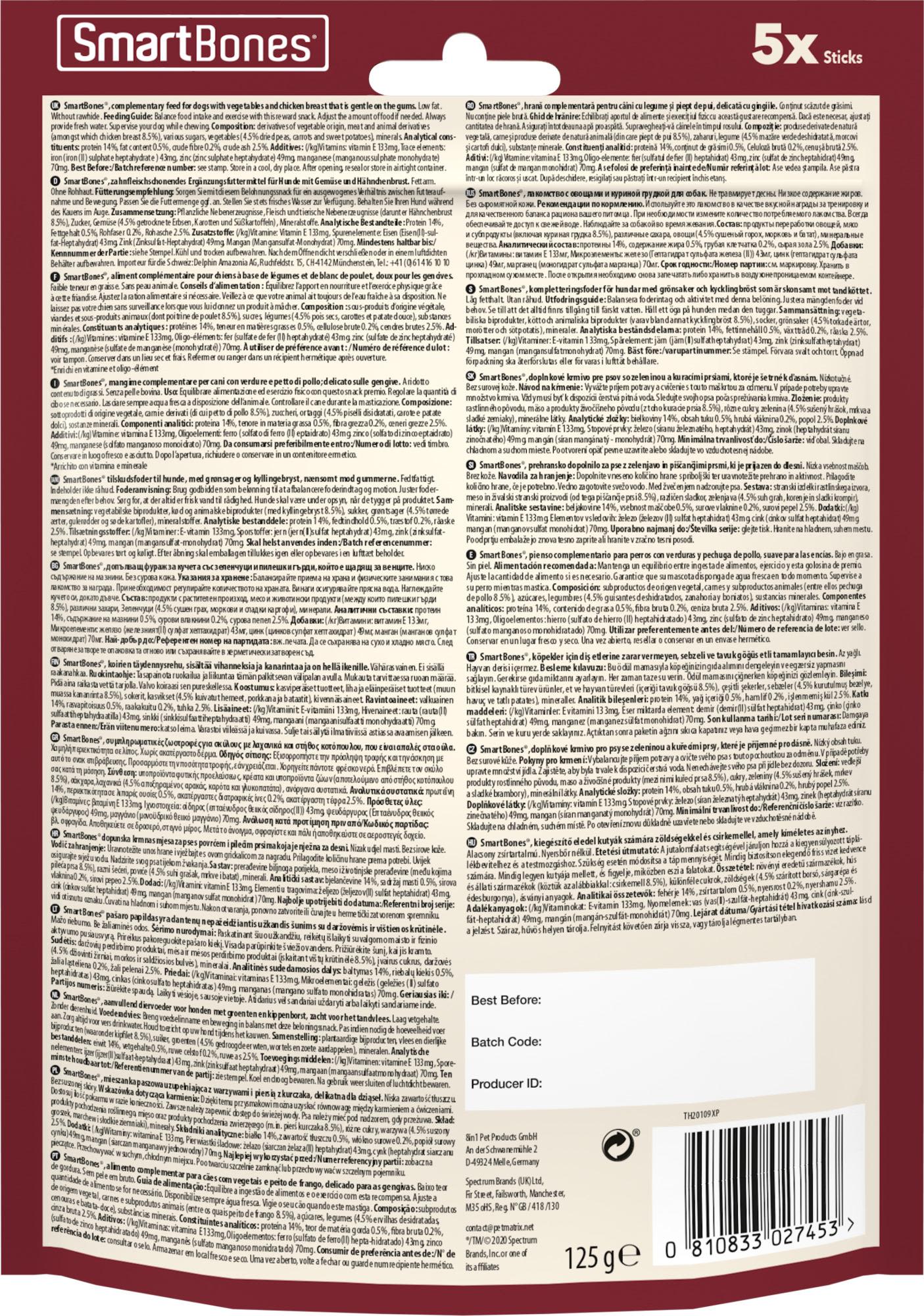 SmartBones® Chicken Wrapped Sticks are irresistibly tasty, chewy sticks without rawhide and wrapped in crispy chicken for true chewing fun. The Mini size is perfect for small dogs. In addition to the chicken, the outer layer contains tasty vegetables. The Chicken Wrapped Sticks are also vitamin and mineral enriched, extra low in fat and easy to digest. When chewed, SmartBones® chewy sticks have a natural abrasive effect that supports your dog’s dental health by naturally cleaning its teeth.