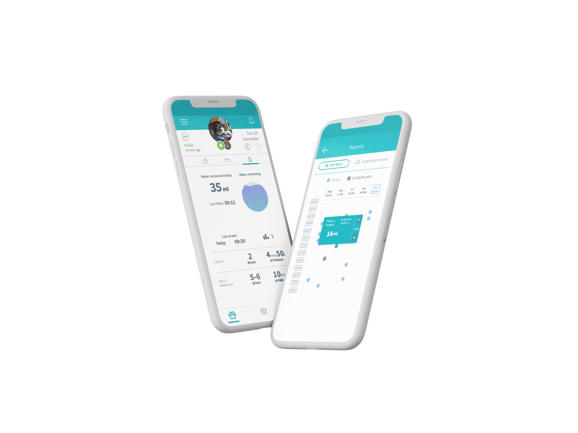 SurePet Felaqua Connect is a water delivery and monitoring system for cats and small dogs, that integrates into the ecosystem of connected pet care devices designed by Sure Petcare with the support of leading vet behaviourists. It encourages pets to maintain a healthy drinking routine by mimicking the properties of a puddle. The water inside the wide and shallow whisker-friendly bowl, is better visible to the pet thanks to the meniscus created from the water-repellent bowl material making it more inviting to it. As your pet is drinking, water gets replenished from the reservoir, eliminating the need for recirculation of the water through a filtering system or a connection to the mains system. With no cables, no filters and removable, dishwasher-safe parts, Felaqua Connect is easy to use and hassle-free.