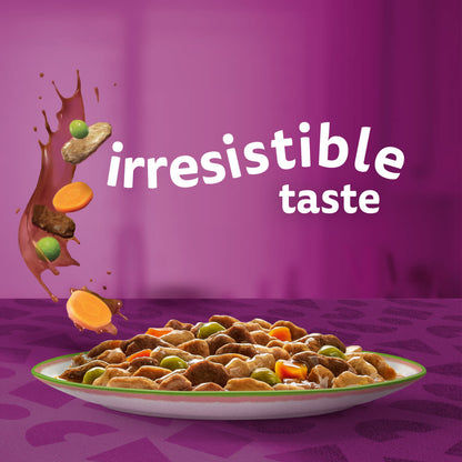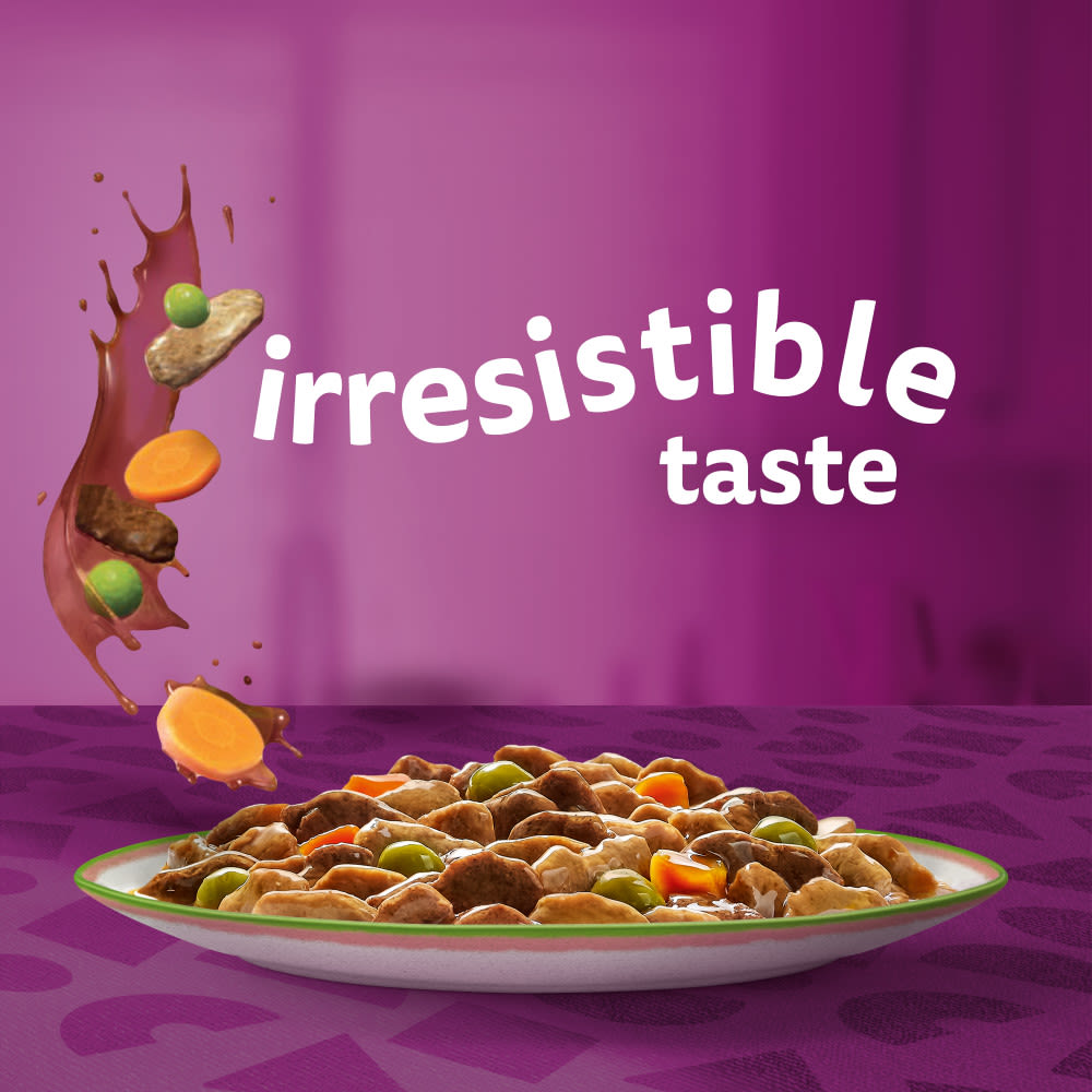 Wet cat food with delicious flavour sensations combining proteins and vegetables in a delightful mix guaranteed to make your cat purr. Cat food pouches with everything your cat needs to help keep them healthy, including B vitamins and balanced minerals.Adult cat food containing four sensational recipes: Beef & Poultry with garden vegetables, Salmon & carrots, Chicken & Whitefish, Whitefish & garden vegetables. Cat food that provides 100% of your cat's daily needs. We are committed to reducing our environmental impact. Fish in our wet cat food recipes is sustainably sourced.