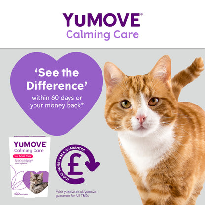 Keep them purring with YuMOVE Calming Care for Adult Cats, previously YuCALM Cat. This unique formula contains natural, scientifically proven ingredients, providing an effective way to help reduce stress, support calm behaviour and ease anxiety.