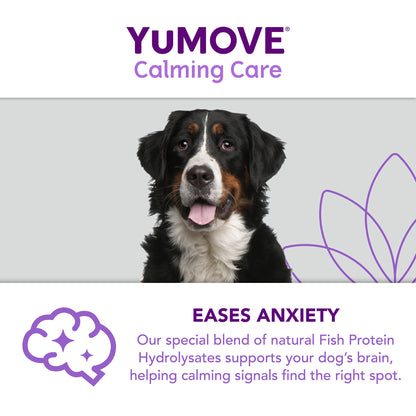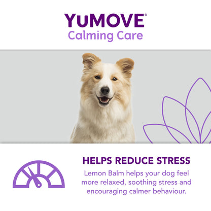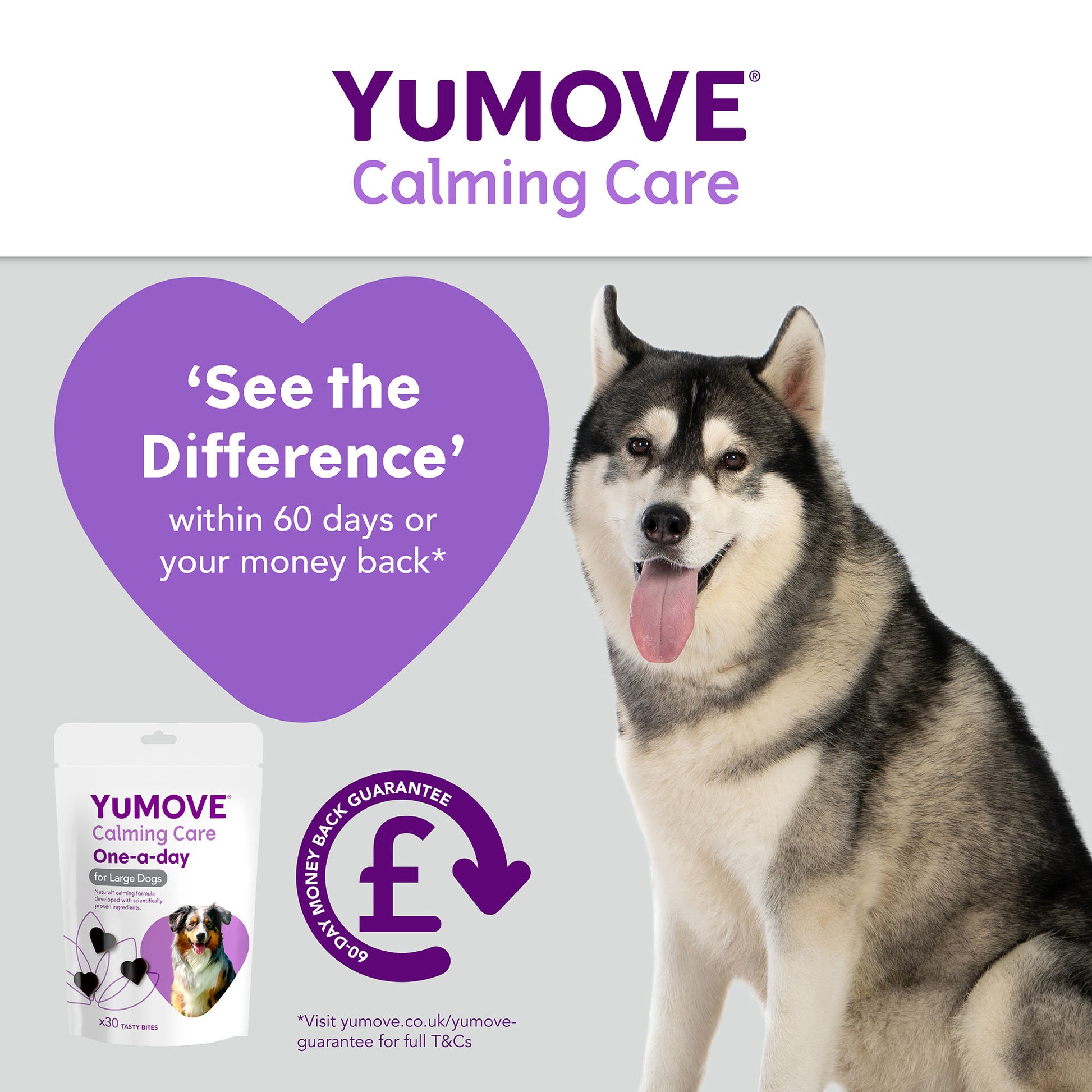 Keep your dog's tail wagging with YuMOVE Calming Care One-a-day for Large Dogs, previously YuCALM One-A-Day. This unique formula contains natural, scientifically proven ingredients, providing an effective way to help reduce stress, support calm behaviour and ease anxiety.