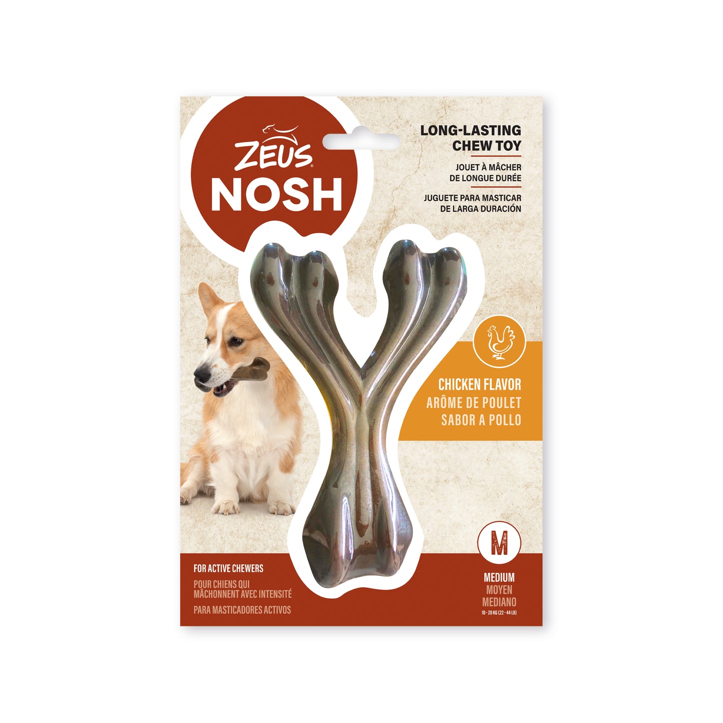 Designed specifically for active chewers, the Zeus NOSH Strong Chew Bone is made of tough, durable nylon that satisfies a dog's natural chewing instinct while providing long-lasting enjoyment. Strong enough to withstand even the most enthusiastic of chewers, Zeus NOSH Strong will keep your dog engaged and challenged with the added benefits of exercising jaw muscles and helping to maintain oral hygiene.